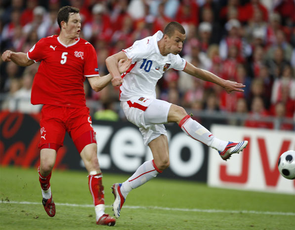 Открыв счет, чехи окончательно ушли в глухую оборону, предоставив сопернику попытаться спасти игру. И такие возможности у швейцарцев были. На 80 минуте Барнетта нанес мощный удар с линии штрафной. Петр Чех парировал этот мяч, но на добивание первым успел Фонлантен. Но вот незадача – мяч после удара полузащитника попал в перекладину. Кстати, в ходе этой опаснейшей атаки мяч попал в руку Уйфалуши и случилось это в пределах штрафной. Впрочем, нужно было забивать и без пенальти.